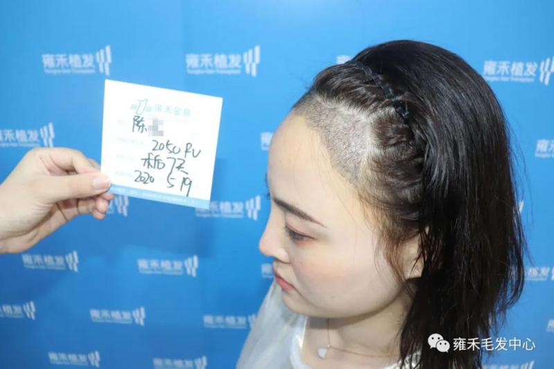 2020年5月12日,上海雍禾用FUE为小陈植发2100单位,含单根头发的毛囊单位850,含多根头发的毛囊单位1250。手术也就4小时,局麻状态,整体感觉还可以的。小陈是可爱的女生,术后前面的头发往前一梳可以遮盖种植区,后面的长发披散开来遮盖取发区,这样她可以正常外出,别人也看不出来植发的痕迹。雍禾植发,艺术植发。