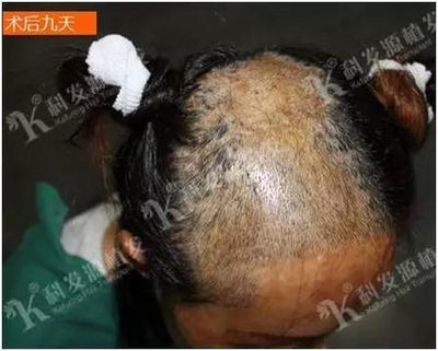 (术后九天,种植的毛囊基本都已经成活,头发生长方向也很自然)