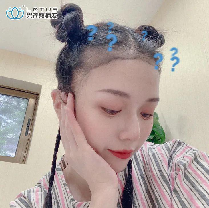 小美女是两个额角有一点方并且比较稀疏,她自己说平时都是用发际线粉遮盖,但是太费时间了。