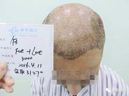 太原雍禾为任先生种植3127单位,本来术前预估种植3000单位,结果多取种127单位。对了,这是采用组合技术种植,既有FUE又有LATTICE,前者重点种植两额角的空白后退区,后者种植头顶的稀疏区,就种植量来说,E比L略微多些。整个头顶秃啊,仅仅种植3127单位,这够吗?我们回答你的是,雍禾注重“节约型植发”,用尽可能少的毛囊量布局尽可能多的脱发面,而这背后则是毛囊的高成活率。