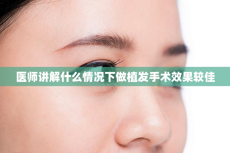 医师讲解什么情况下做植发手术效果较佳?什么情况下做植发手术效果较好?目前有很多人都通过植发手术解决了自己多年的脱发问题,重新找回了自信,再也不用为脱发而烦恼了,植发手术能够解决各种毛发问题,起到一定美容效果,但是植发手术也不是任何情况任何脱发患者都能够做的。那么发友在什么情况下做植发手术效果是较好的呢?植发专家下面来为您介绍。