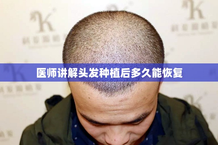 医师讲解头发种植后多久能恢复。头发种植手术时间短,可以立即回家。休息一天后即可工作。会结痂,个人体质不同,持续时间也不同。会有肿胀,但是几天后就消失。手术后六个月效果就很明显了。一年以后效果较明显。一般前三个月,植发会脱落,这是正常的,因为头发还未进入正常的生长期。需要等到一年后,就可以看到浓密的头发了。