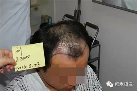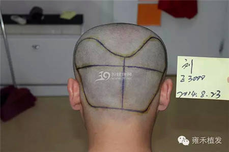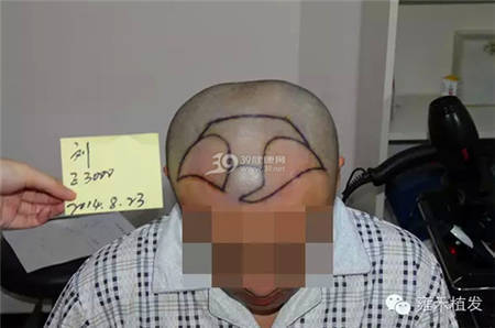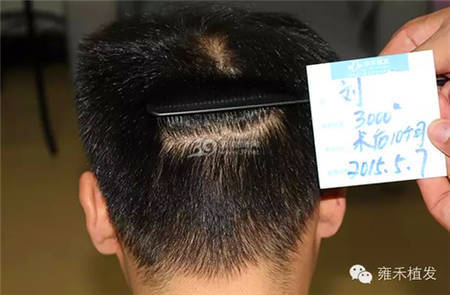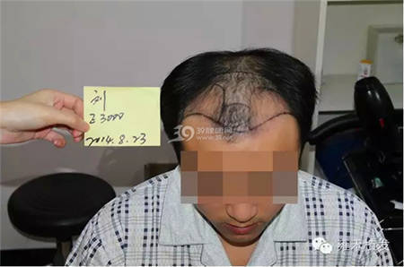 看,刘先生术前的脱发区,一撇一捺构成一个“八”字秃区。用“八”字象形脱发真是叫人不忍……)