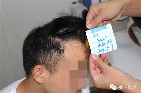 刘先生在上海雍禾采用FUE-APL1.0(现升级为2.0)取种3000毛囊单位,术前预计和实际取种量完全一致也算是巧合了,按毛囊单位含的头发根数来说,单根的毛囊单位1350,多根的毛囊单位1650。那么大的脱发面积,说真的种植这么多的量不算多。在雍禾植发我们尽可能地让特定的种植量发挥更大的覆盖面。