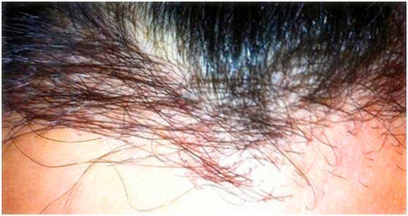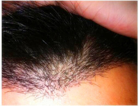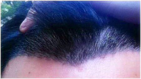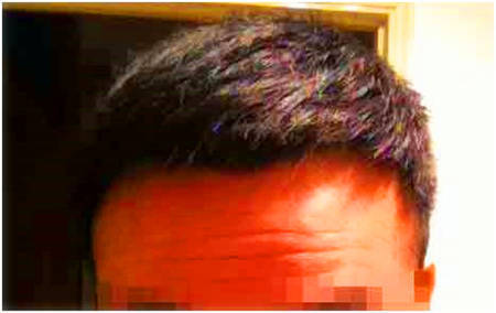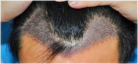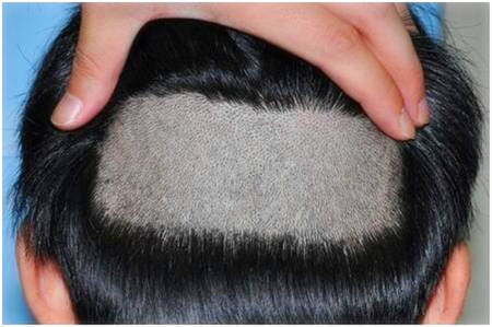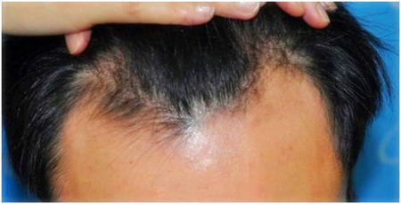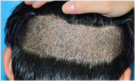 术后74天,基本和术前差不多,不掀开来里面是黑色的,加上部分没掉的和其他头发汇合一块去了,有一定改善作用