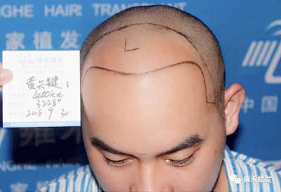在来雍禾植发前,我们猜测黄先生在经济上是土豪,可在头发上是赤贫的,30出头的人发际线老高,后退一手掌宽吧,即使前面尚留的头发也是稀疏。头皮赤裸,就是头发赤贫,亦是形象赤贫。说来他其它毛发都是“土豪本色”,浓密眉毛衬托出一双睿智有神的眼睛,对称鬓角给人一种男士固有的性感美,有型的胡须透视着男人的成熟之美,本来他该是一个标准的型男,可偏偏输在了头发上,这让他多么地不甘啊!在毛发上成就“土豪形象”,无论是四缺一,还是三缺一,这“一”都是头发!而他这样的脱发情况,没有别的办法,唯一植发种头发!!