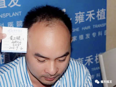 对了,黄先生是福建人,来广州13年了,偶然间知道植发,这才决定重振头发上的“土豪形象”。不止广州,就是全国,广州雍禾是第一家专科毛发移植,并且卫生部门认定的专科植发,对黄先生来说这是不二之选。他来到广州雍禾,当天就决定立即植发,并且要用最好的植发技术LATTICE,于是医生采用LATTICE为他种植3250单位,比术前预计的多种植22单位。此前业内曾有“植发闪客”,是说从了解考察医院到真正植发也就一两天时间,而黄兴键当天考察医院当天就植发,这可谓是“植发闪闪客”!当天黄先生反复念叨的话就是:既然想做,那不如早点做。