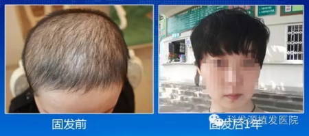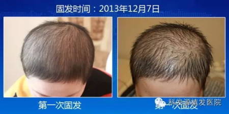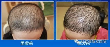 第一次固发后,头发有变密的倾向,头发仍然有些细软,并且颜色有些枯黄,显得没有营养。
