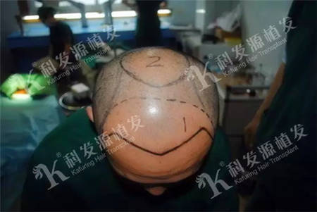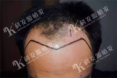 术前设计:上海科发源的金牌设计师在跟刘先生沟通后,为刘先生设计了发际线,并划出了要“种植”头发的区域。