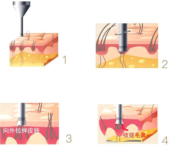 在拢吸提取方面,因为口径是钝角所以不会将毛囊组织直接切断,所提取出来的双胚、多胚几率更多,甚至可以达到双胚比1:3的效果,可以增加种植的发量。