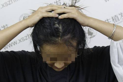 术后10天,掀开刘海,可以清晰的看到发际线的高下降了,两个额角有了头发,生长方向自然,密度非常好。