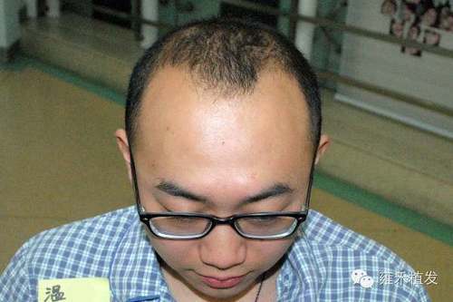 低头看,温先生的头面更显稀疏,脱发面更大。