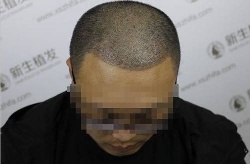 顾先生遗传性脱发,在26岁时联系到新生,届时脱发已达5年,检测4级脱发,额角已经没有头发,核心区头发略稀疏需要加密。