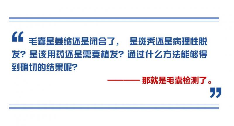 你的毛囊健康吗?想要了解头发的健康状态,快去给毛囊做个体检吧,千万不要贻误时机,错过脱发治疗的好时机哦,毕竟每个毛囊资源都是不可再生的,应该被珍惜呦~