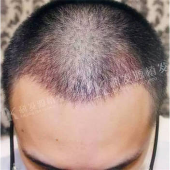 术后两个月,此时新种植头发进入脱发期,一部分头发脱落,但另一部分小绒毛也在长出,所以显得整体比较稀疏,待几个月后头发全部长出就可以看到最终植发效果了