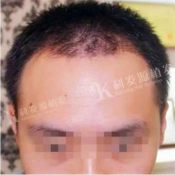 术前,微微低下头,两额角已经呈现“M”型后退,前额头顶较为稀疏