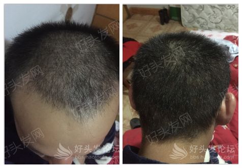 但无奈还是经理了这个痛苦的环节 虽然说脱落的不是很多 但也足够我头发生长一段时间了 怎么说呢 虽然看着依然稀疏的头发心里很不是滋味 也很焦急 但正应了那句老话 心急吃不了热豆腐 所以还是得努力让自己平静下来 平常心对待 保证充足的睡眠 良好的饮食 按时用药 坚信一定会有满意的效果 我和各位看官一起期待着…… 上两张1月3号 整三个月的图吧 我觉的没有什么改变 希望接下来的生长期 我的发茬能给力一点