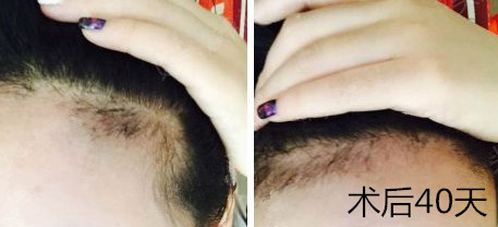 下面是术后40天的照片,可以看出患者经历了脱落期后,已经有新的头发长出了。
