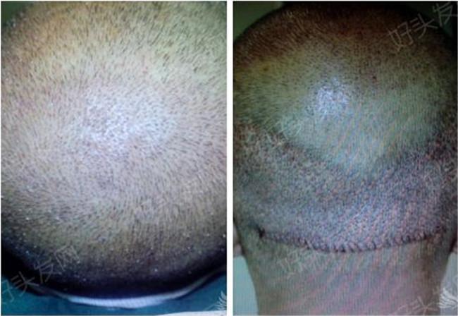 1。手术前,头顶脱发严重,有明显秃顶症状