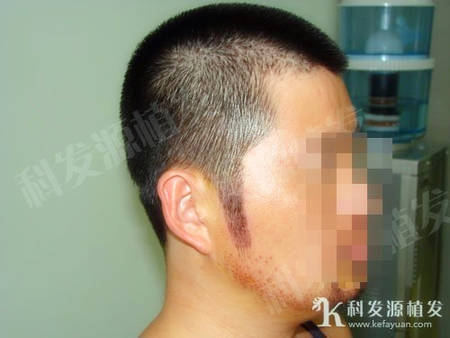 天生鬓角短,根据五官特点以及个人喜欢,鬓角下调,并且将胡须与鬓角之间进行过渡衔接移植,采用FUE手术方法进行移植,术后效果理想。