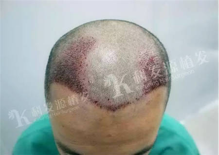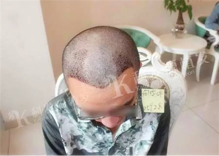这是术后四天的照片,还没有清理血痂,可以看到新种植上去的毛囊都已经成活