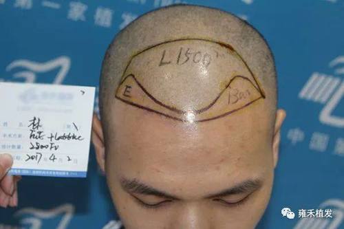 2017年4月2日,福州雍禾为小林种植2800单位,发际线后退处用FUE-APL2.0种植1300单位,头顶稀疏区用LATTICE种植1500单位。种植方案是灵活的,前面后退的空白区均匀密度种植,稀疏区是梯级密度种植,前面较高密度,后面是较低密度,彼此综合起来又是浑然天成。雍禾植发既是艺术植发,又是节约植发,用尽可能少的毛囊量布局更多的脱发面。