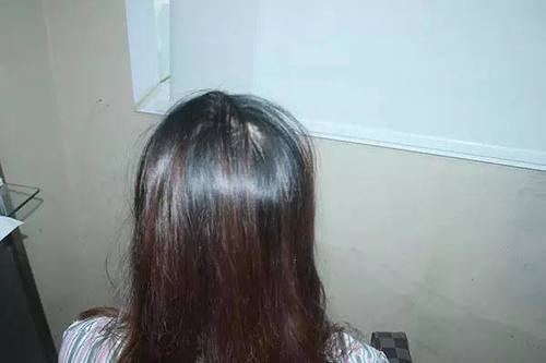 后枕取发区,术后将上面扎起来的头发披散开来什么就看不到了。