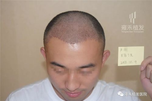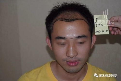 颜色深一些的发区是严先生原来的头发,稍浅一些的毛茬儿是雍禾种植上去的。这么大一块脱发面积,用3550毛囊单位着实不多。