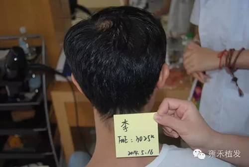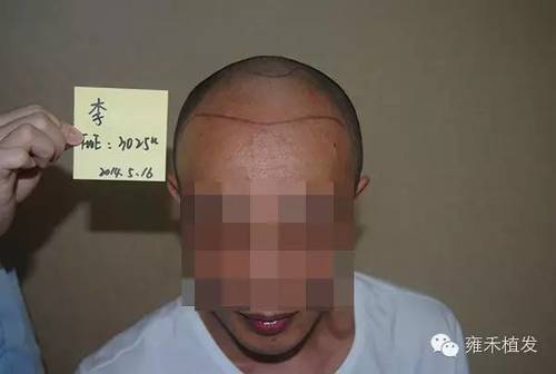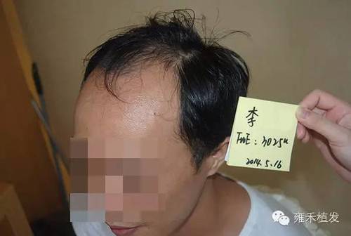 2014年5月16日,广州雍禾植发采用FUE-APL1.0(现升级为2.0)为李先生种植3100单位,本来术前预计种植3025单位,但在手术中多取种75单位。大家可以看看后面的图片,李先生的脱发面积挺大的,3100的种植量不算多,好在雍禾的毛囊单位量是货真价实,且高成活率。