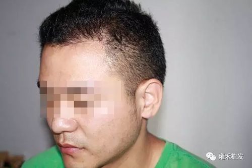 (周先生术前的头发,发际线后退,并且尚有头发的地带稀疏。)