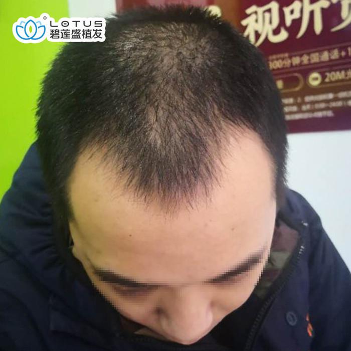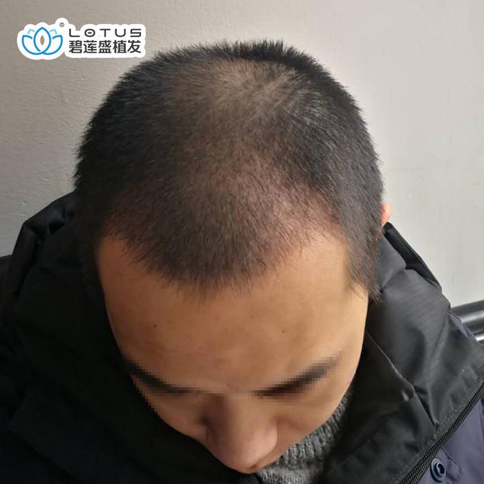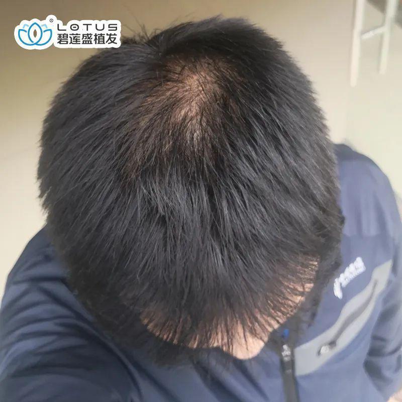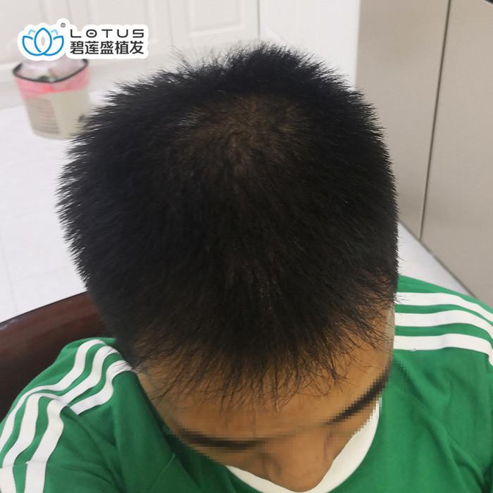 术后6个月时,脱落期掉的头发开始是明显生长起来,头顶肉眼可见的变黑密。