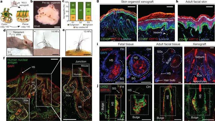 未分化的人类干细胞被诱后在体外发展成类皮肤结构。当类皮肤结构被植入小鼠体内,这些结构会长出毛发—这突显了该研究在再生医疗中的潜力。