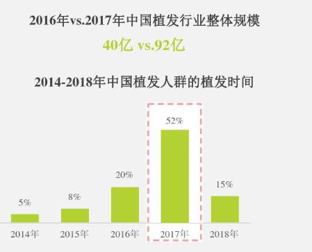 从2017年开始,植发行业战争很惨烈,广告更是满天飞,植发市场将面临一场前所未有的大洗牌,小型植发机构岌岌可危,战略升级,行业规划范势不可挡。据了解,中国已经成为仅次于美国的全球第二大医美国家,从人口数量上来说甚至更高,单2017年医美市场产值就超过8000亿元,仅植发项目就突破100亿。近几年中国植发行业的用户保持60%-80%的增长幅度,预计2020年中国植发行业市场规模将突破200亿元。