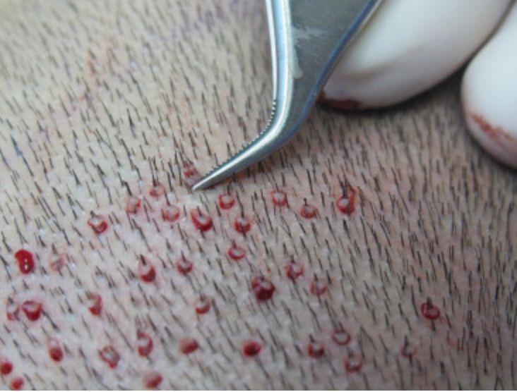 FUE(毛囊抽取移植技术):医生使用用直径为1mm或更小的打孔器切入皮肤,将其中的毛囊单位取出,再将取出的毛囊单位种植到受区。FUE手术由于伤口小,近些年比较热门。