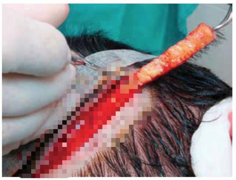 首先,医生会为患者进行局部麻醉(利多卡因 肾上腺素的混合液),将麻醉剂注射入供区头皮。