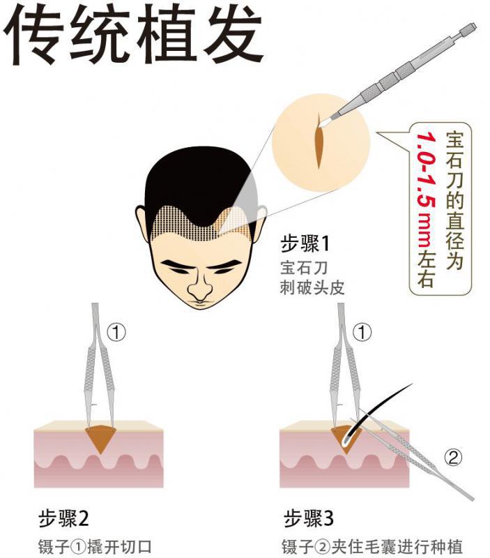 市场上比较常见的两种,一个传统植发,一个是微针植发。