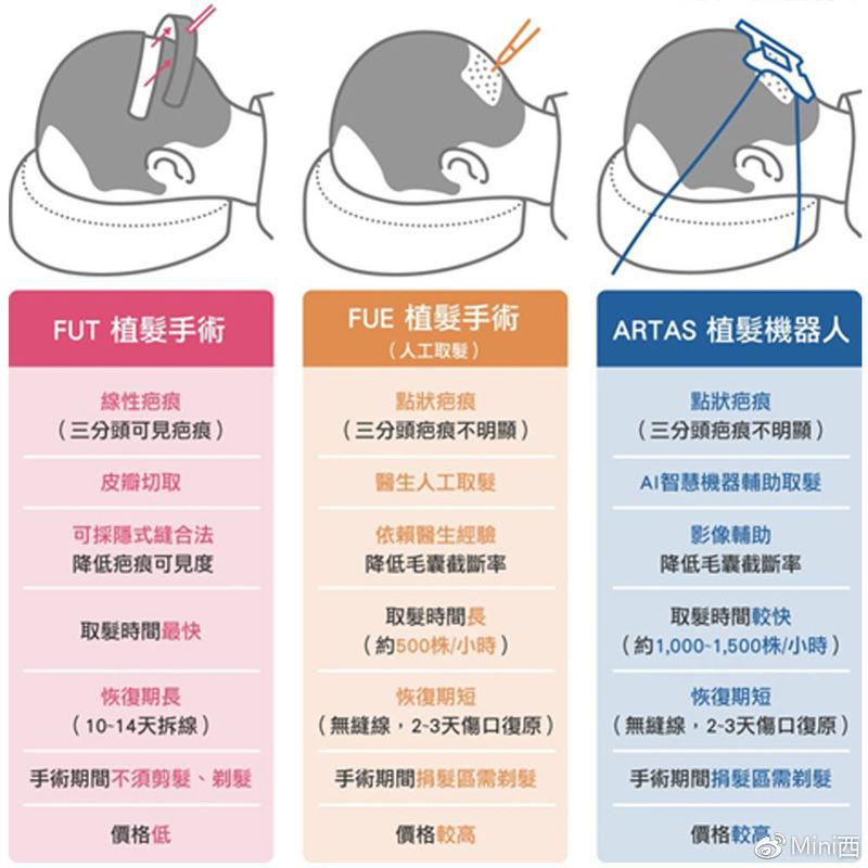 FUT、FUE、ARTAS。这三种方案各有优势。