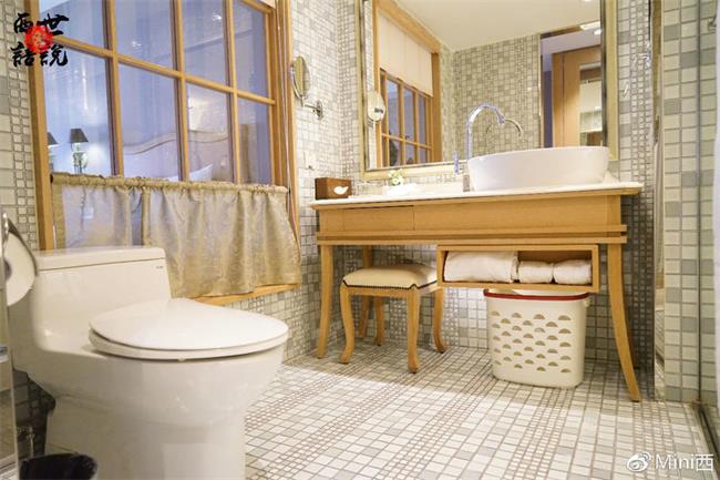 房间的洗漱台与浴缸设计挺前卫,特别是哪个位于门口的圆形浴缸。我是爱极了。特别适合情侣。(只可意会不可言传)