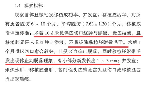 在两侧额角1.5cm2的区域内,1~3个月时,毛囊的成活率分别为47.3%和57.4%,在6~12个月时,毛囊的成活率分别为92%和90.4%。文献中没有透露种植的密度。
