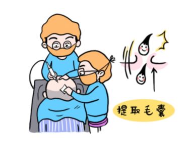 我们是保卫大军的后枕部兄弟兵,我们健康顽强,不会受到雄性激素的影响。现在医生用精密的技术将我们提取出来。