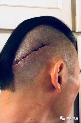(应蔚民FUT后枕缝合处,看着是不是在视觉上有恐怖感?)