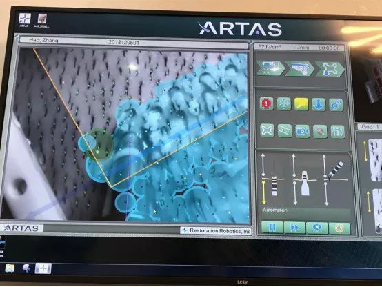 ?ARTAS会利用图像技术及智能算法,自动演算打孔、位置角度、方向、密度、分布等,避开有发株的位置,智能演算确保打孔均匀,动作精准高速,有效地缩短了手术时间,降低了人工操作的不确定性。