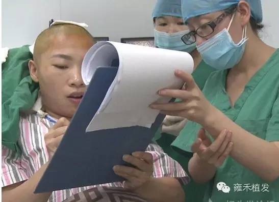 (雍禾患者在手术中核实毛囊量后签字,然后医生方可种植,确保毛囊单位量精确到个位。)