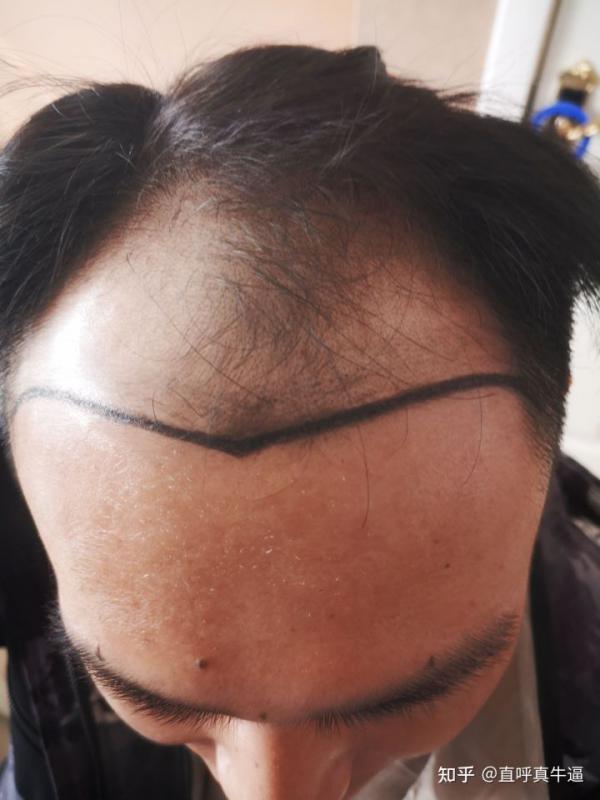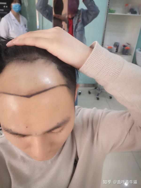 设计好发际线护士带着抽血、做心电图、前面稀少需要加密的部位剃掉了。
