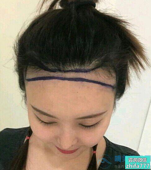 【发际线植发术后当天】我前额空了一大片,平时都不敢掀开自己的额头的,显得脸特大,我都不敢直视自己,真的毫不夸张。现在想想要做植发手术了,心情还是有点激动又紧张呢。植发术前医生给设计了植发区,还有体检,术前的一些事项,就等着术后效果了。