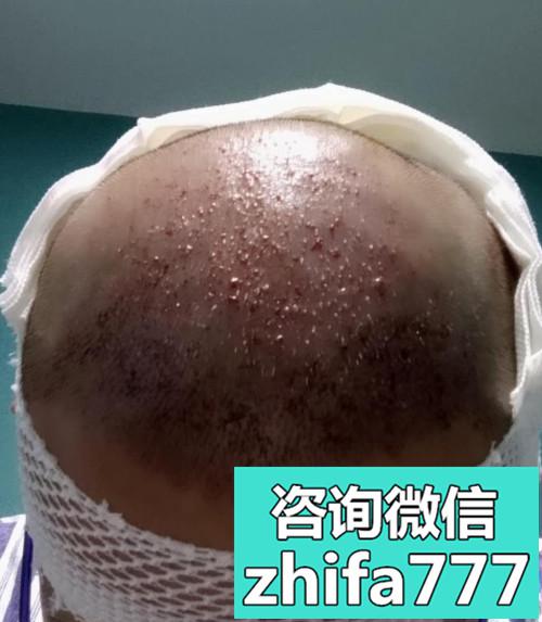 【秃顶植发术后当天】手术做完,植发区还在冒血,不过感觉一点都不疼,手术过程也不疼,只是打麻药的时候疼一下,手术当中我还几次睡着了,做完就特别困,脑袋也是晕的。现在的紧张劲儿也没有了,术后医生还叮嘱注意事项,还得忌口,抽烟喝酒这些都不能碰。