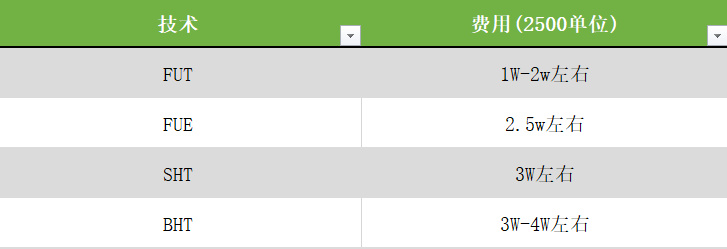 天津地区,不同的植发技术大概价格,发友们可以参考一下