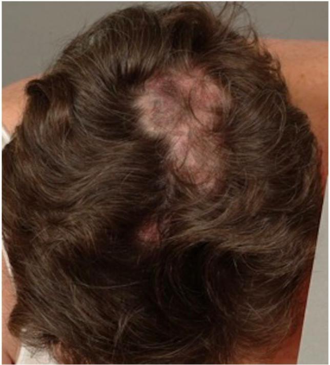 原发性瘢痕脱发指的是假性斑秃、红斑狼疮导致的脱发、毛囊性扁平苔藓、黏蛋白性脱发等。继发性瘢痕脱发是指深度烧伤、刀伤等外力伤害,放射性皮炎、皮肤恶性肿瘤之类的疾病导致的瘢痕性脱发。
