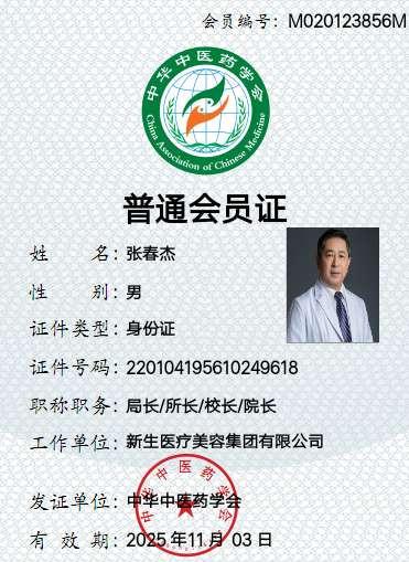 热烈恭喜2020年11月新生植发张春杰院长荣获中华中医药学会会员。
