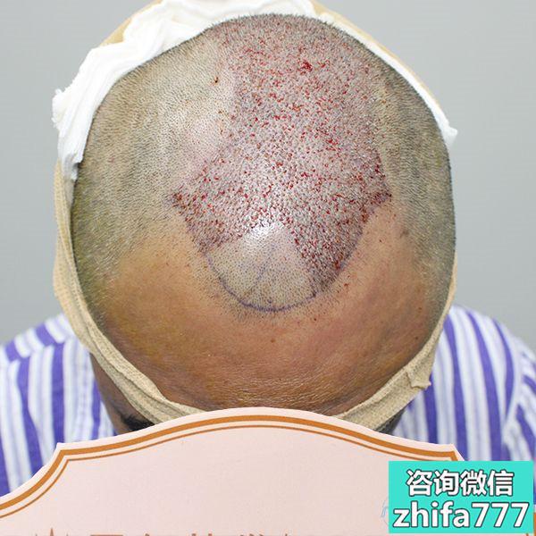 【头顶加密种植术后当天】终于把植发给做了,心里总算安心了一点,看看我术前的照片,看着是不是头发都要掉光了。我一共种植了2600毛囊单位,不多也不少刚刚好的那种,真的很希望种植出来的毛囊很好。为了提取部位不在渗血,医生为我包好了纱布,看起来头大的有些明显了。